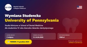 Uniwersytet w Pensylwanii oferuje dla studentów IV roku kierunku lekarsko-dentystycznego 2 miejsca celem odbycia studiów klinicznych w terminie 13.04.2026-24.04.2026 w School of Dental Medicine University of Pennsylvania Studenci muszą we własnym zakresie uzyskać fundusze