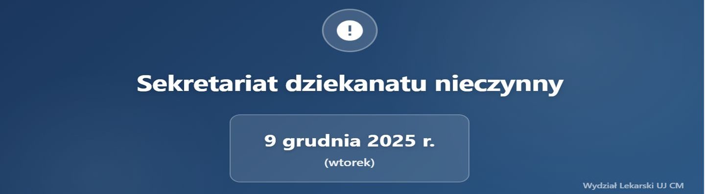 Uprzejmie informujemy, że 9 grudnia 2025 r. (wtorek) sekretariat dziekanatu Wydziału Lekarskiego będzie nieczynny.