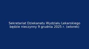 9 grudnia 2025 r. (wtorek) – Sekretariat Dziekanatu Wydziału Lekarskiego nieczynny